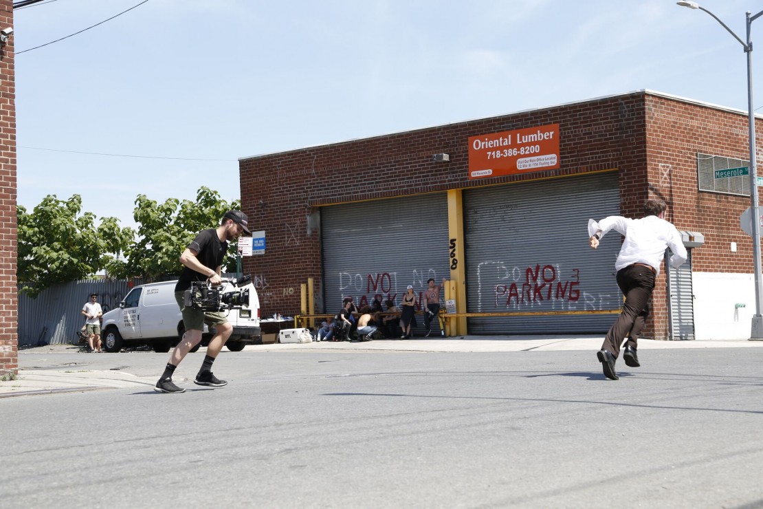 Yo mismo busqué locaciones por esas dos semanas – de inmediato – hasta el momento del rodaje. Salía en bicicleta por New York cada noche por barrios que pensaba podían servir. Connor Kammerer, mi amigo y colaborador frecuente a quién invité a co-dirigir, me ayudó a buscar locaciones también. Era difícil – necesitabamos lugares muy específicos. El libreto pedía acciones muy calculadas y piezas fijas. Tenía que encontrar un banco a tantos pasos de un giro o una vereda, con algo para esconderse agachado a tantos pasos después de eso.